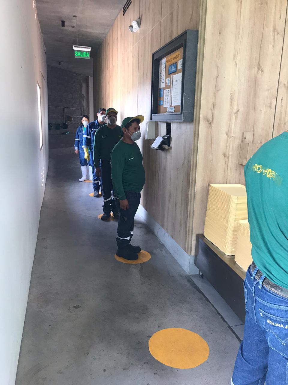 Para cumplir con el distanciamiento social se han realizado algunas acciones como la instalación de divisiones altas en las mesas de comedor, separaciones en mesas de reuniones y espacios de trabajo compartido. Así también, en algunas compañías, las visitas han sido absolutamente restringidas y las capacitaciones in situ canceladas. Las reuniones físicas se han sustituido por teleconferencias. Y si se realizan encuentros, estos deberán darse en lugares abiertos con reducción de personas manteniendo siempre el distanciamiento social de 2 metros. Además, el personal que pueda continuar con sus labores desde casa permanecerá más días bajo la modalidad de teletrabajo.